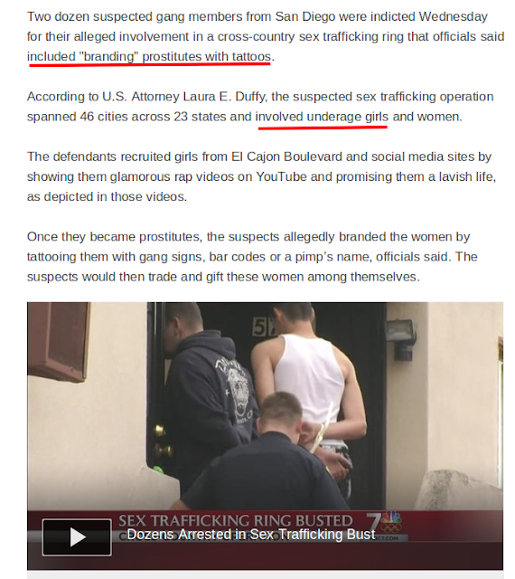 Many of these criminals also 'Brand' their 'commodities' by tattooing them. This serves, not only to assert ownership of the victim. But to psychologically abuse and convince the victim into believing that she is a slave, and to completely diminish and destroy her worth as a human being.